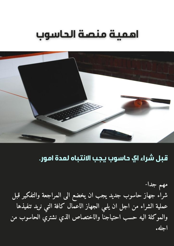 شراء جهاز حاسوب جديد يجب ان يخضع الى المراجعة والتفكير قبل عملية الشراء من اجل ان يلبي الجهاز الاعمال كافة التي نريد تنفيذها والموكلة اليه حسب احتياجنا والاختصاص الذي نشتري الحاسوب من اجله.